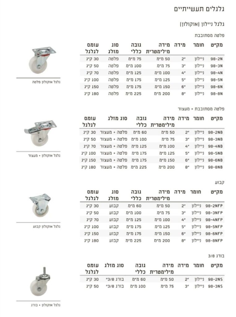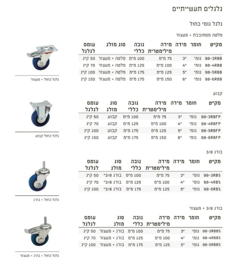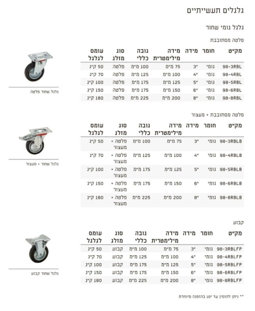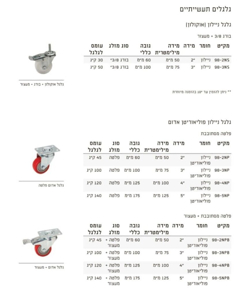 מגוון דגמים גלגלים לתעשייה לעומסים גבוהים