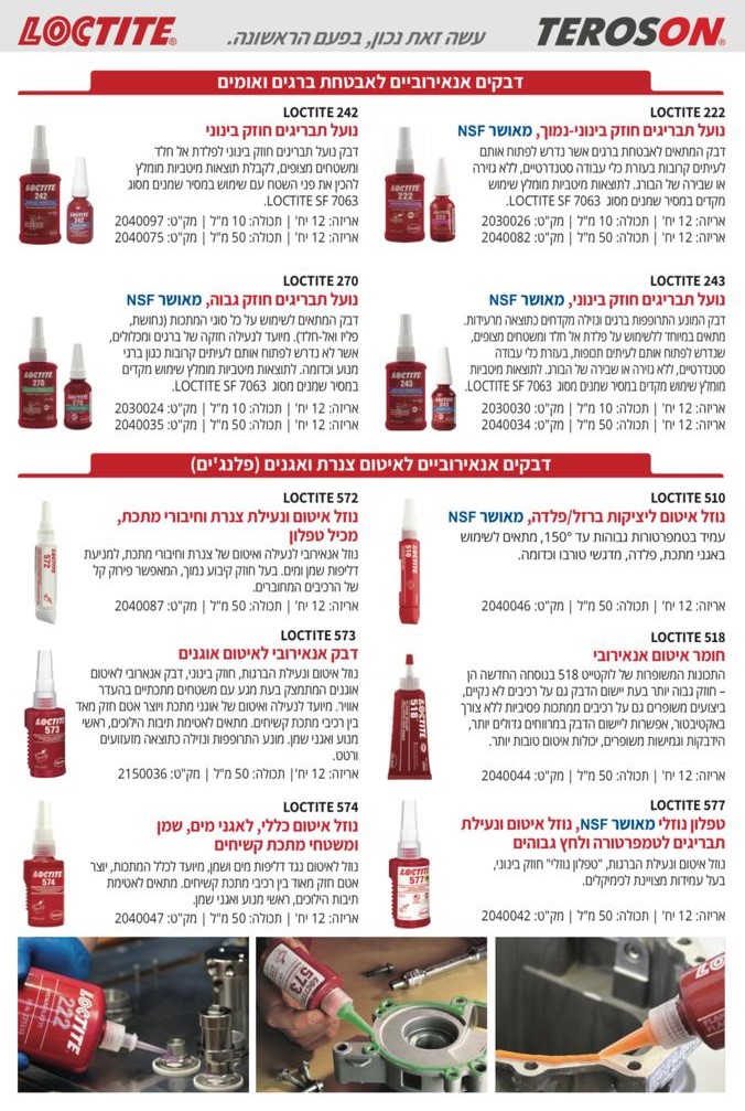 מלאי זמין לדגמי: LOCTITE : 55 / 222 / 242 / 243 / 270 / 510 / 572 / 574 / 577 / 638 / 648