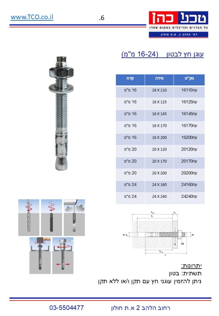 ייבוא ושיווק עוגני חץ לבטון במגוון רחב של מידות